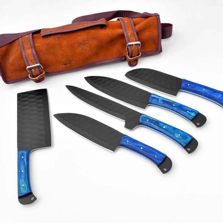 5-Piece Knife Set / with Leather Carry Bag Blue