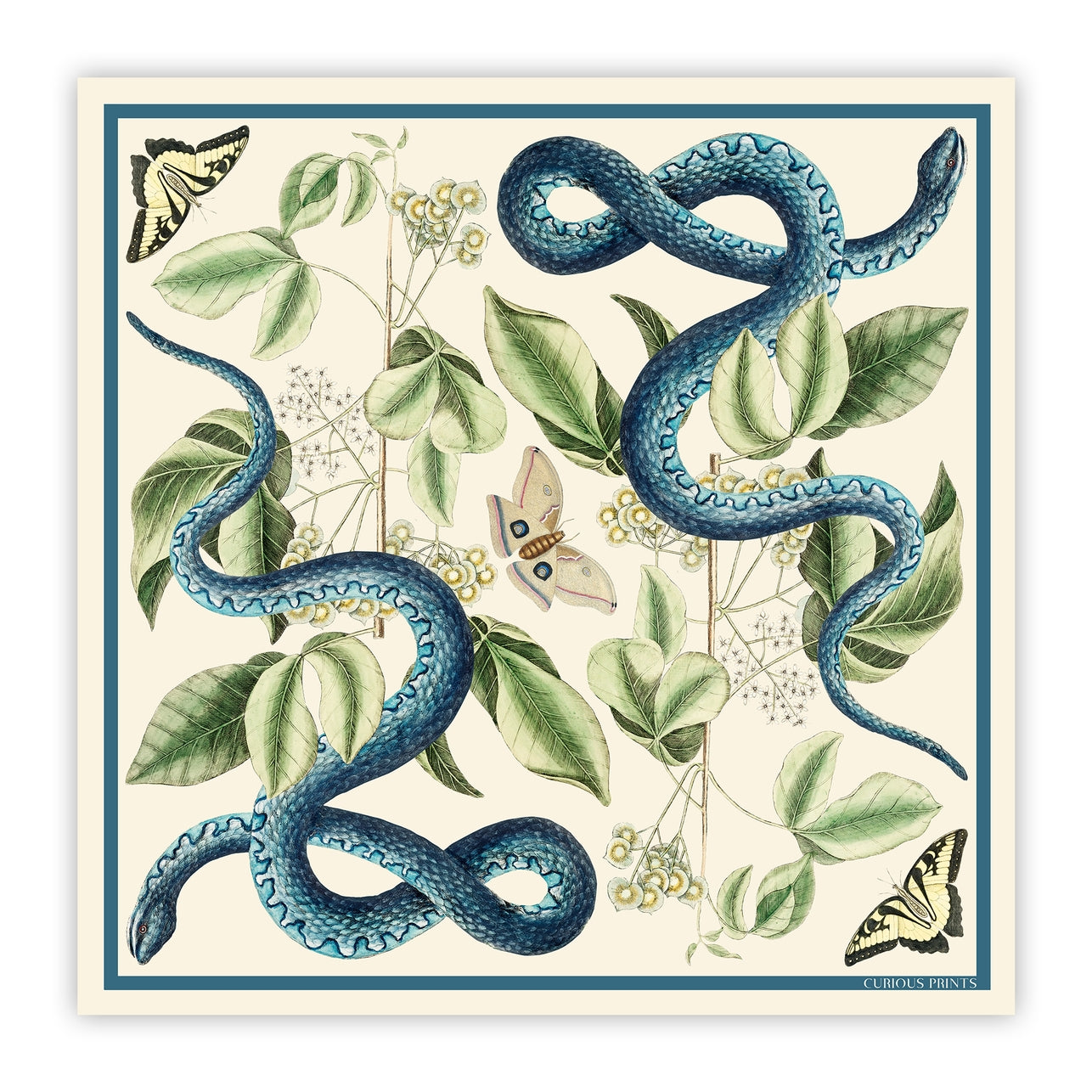 Blue Snake & Butterfly Silk Scarf - 17 x 17"