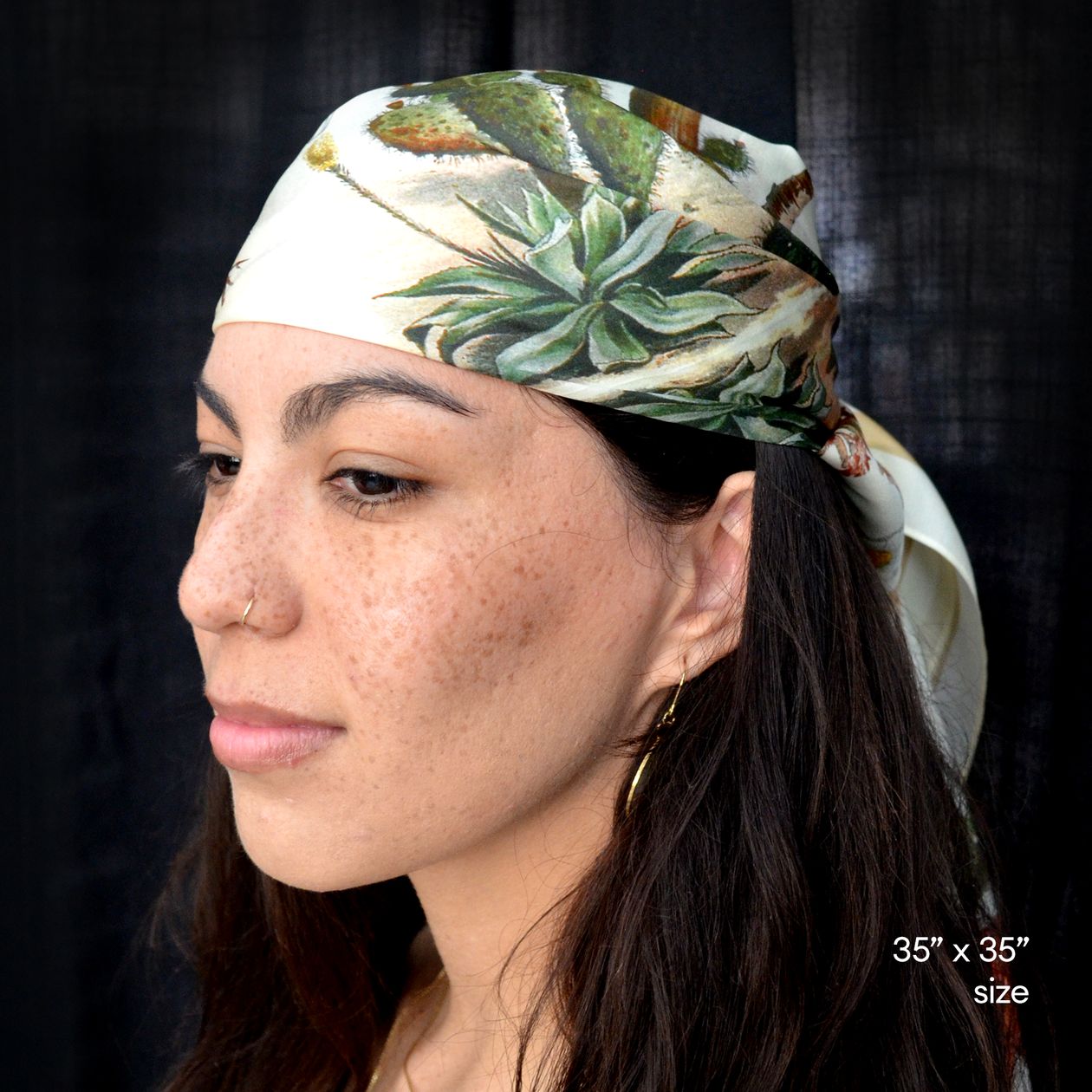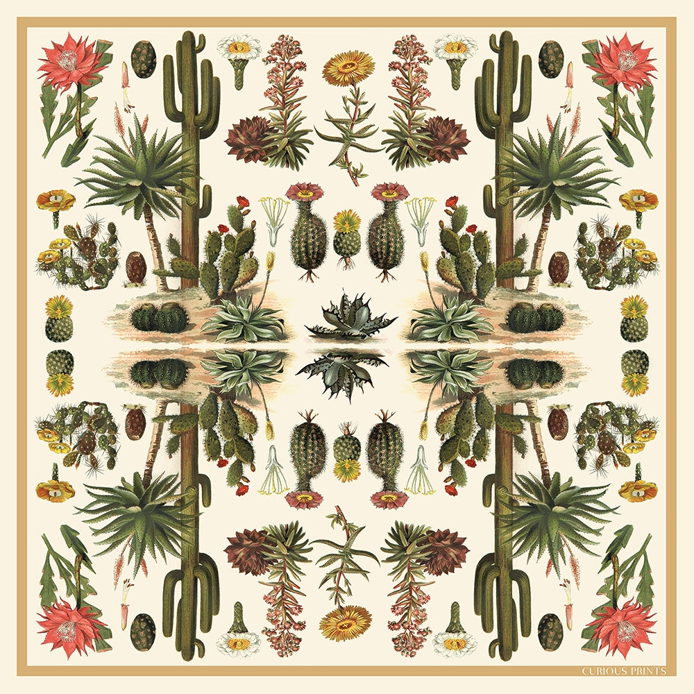 Vintage Cactus Print Silk Scarf - 35" X 35"