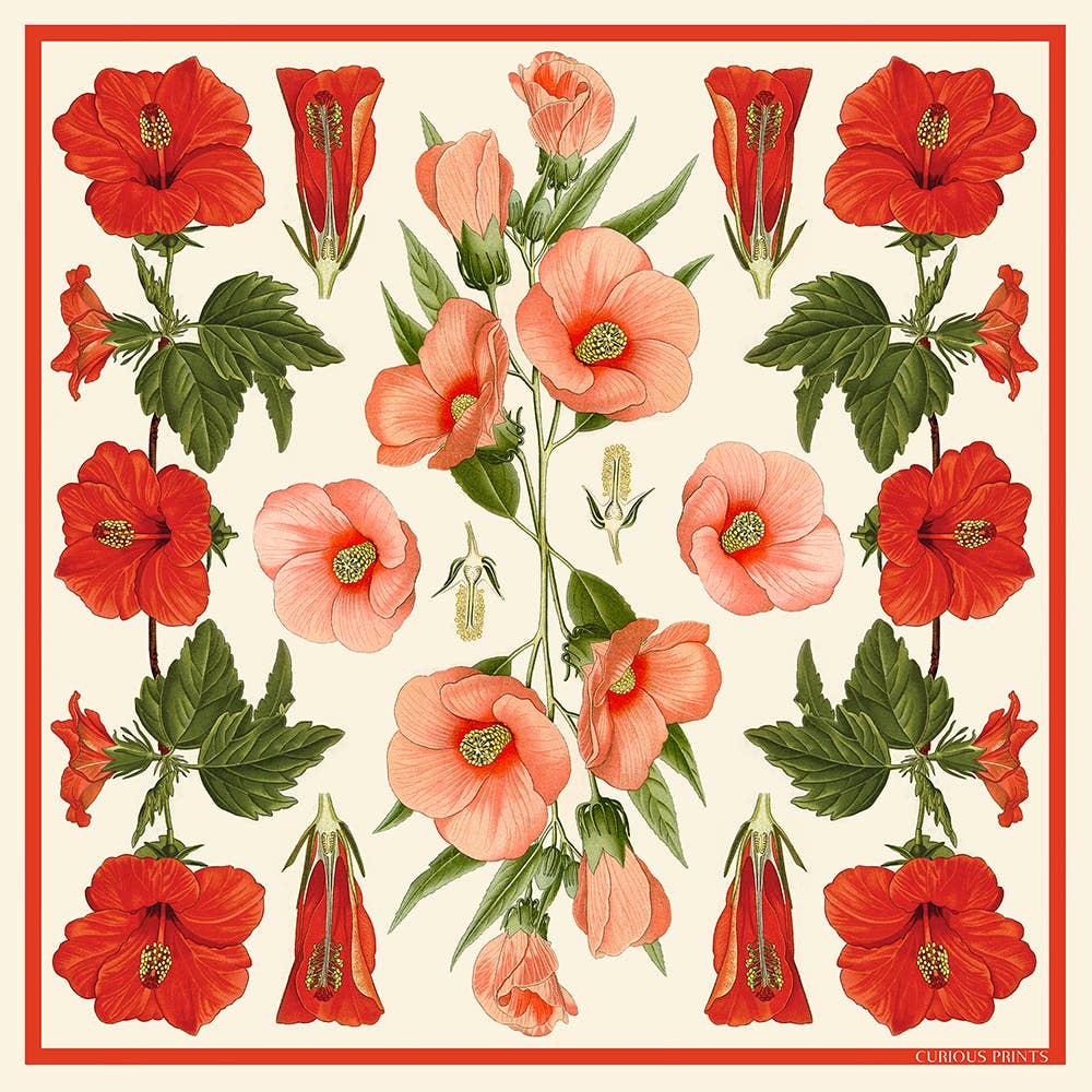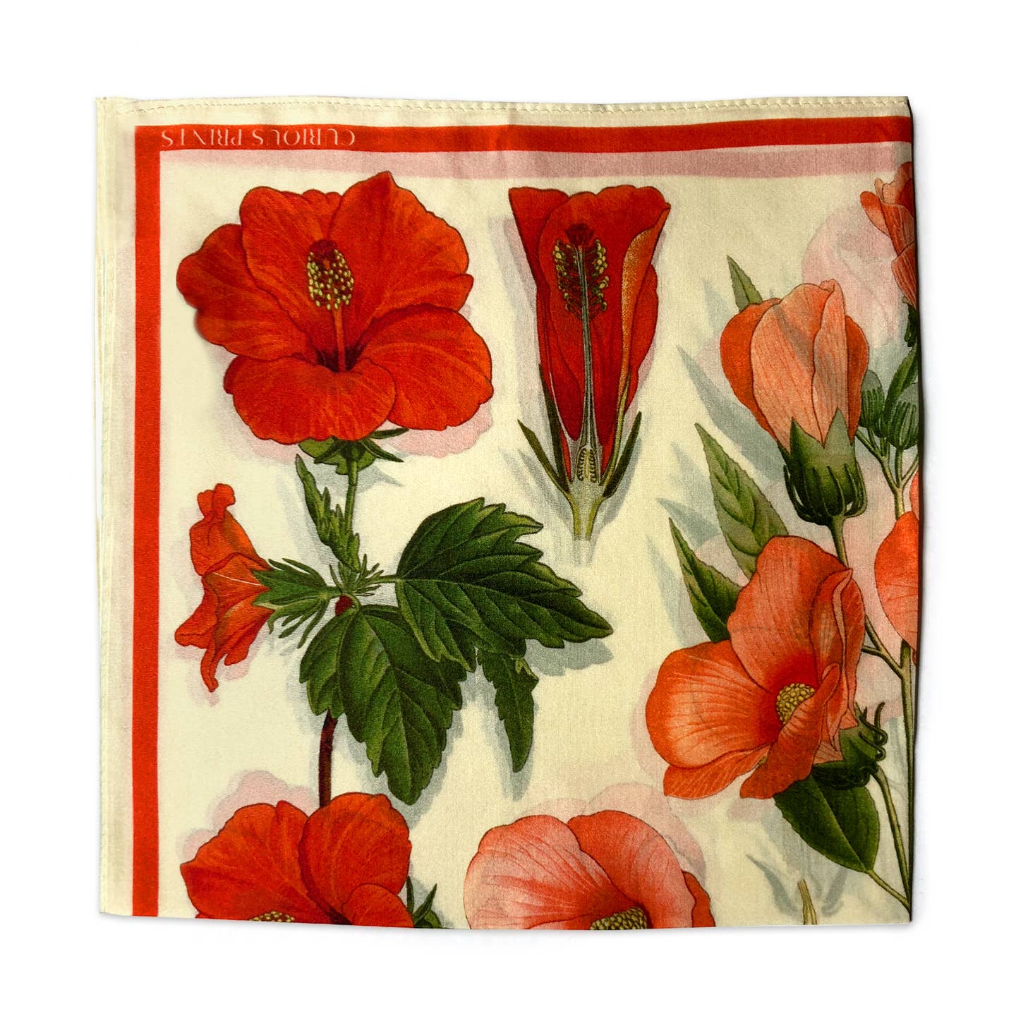 Vintage Style Hibiscus Flower Silk Scarf - 35" X 35"