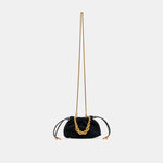 Perfect dressy little bag, with a detachable oversized rope chain strap, long crossbody straps, and convenient drawstring, the luxurious details elevate any outfit. Rich suede hues meet a chunky gold chain, drawstring closure, and hands-free crossbody strap for a cool yet dressy accessory.