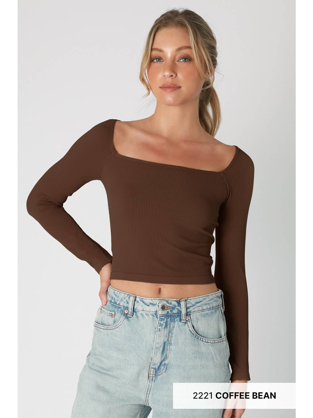 Ribbed Long Sleeve Square Neck Crop Top
