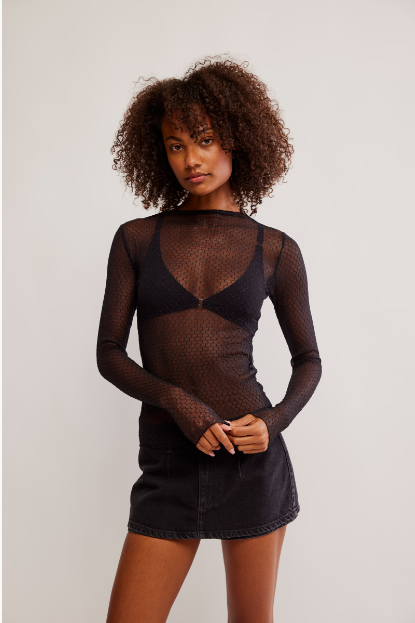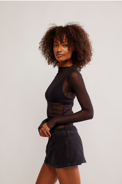 Sheer layering perfection, this is the wardrobe spice you've been missing!  A transformational wonder, This high necked fitted top makes everything you put under and over it spectacular.  Add a sleeve to a dress, add some sass to a vest, or simply layer it over a bralette to instantly look styled.  Staff favorite!