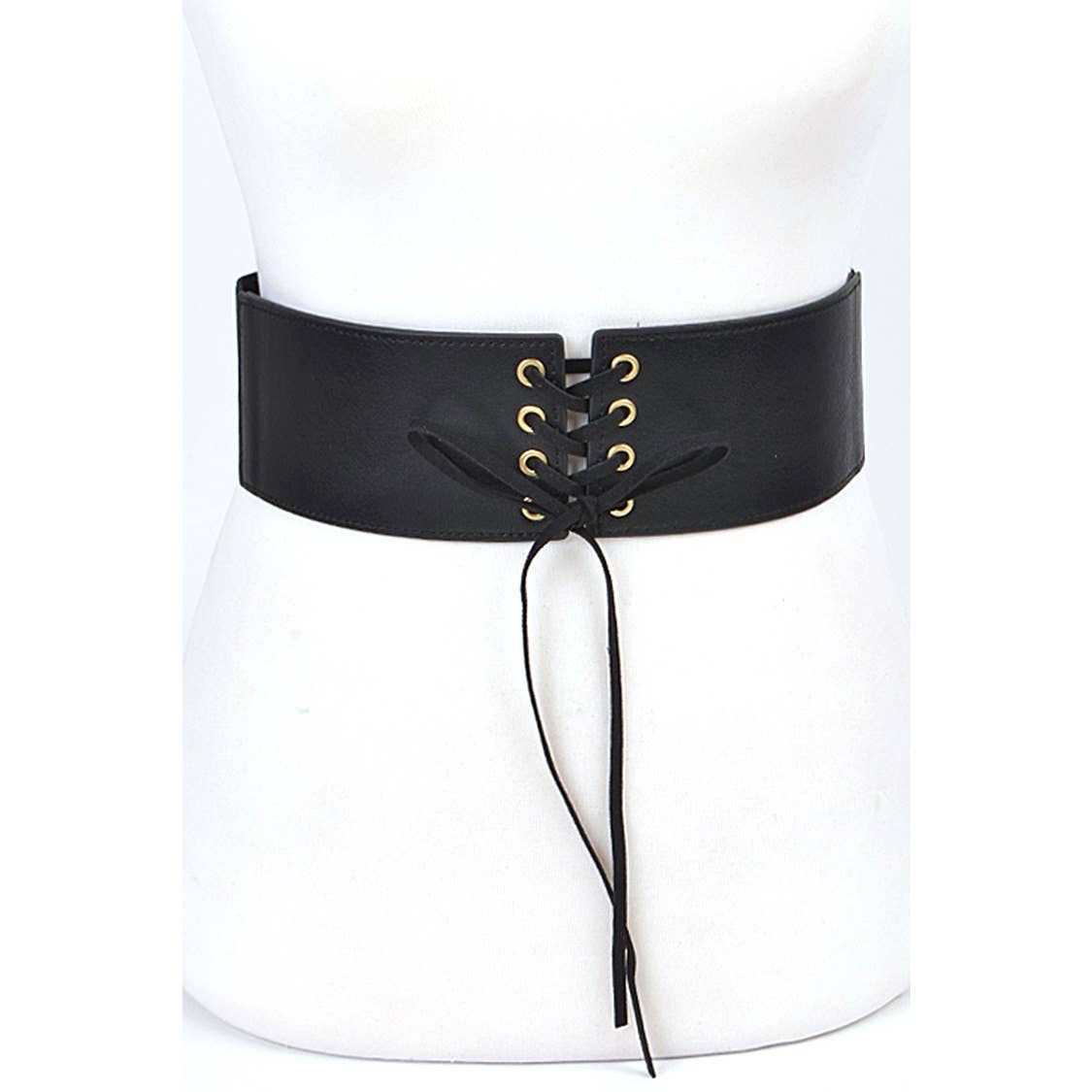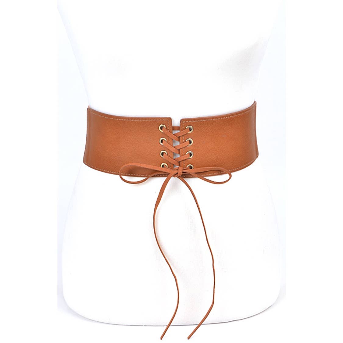 BOHO LACING ELASTIC FASHION BELT One Size / Adjustable Width - 3" Length - 28.75" Composition - Faux Leather, Elastic Lead & Nickel Compliant