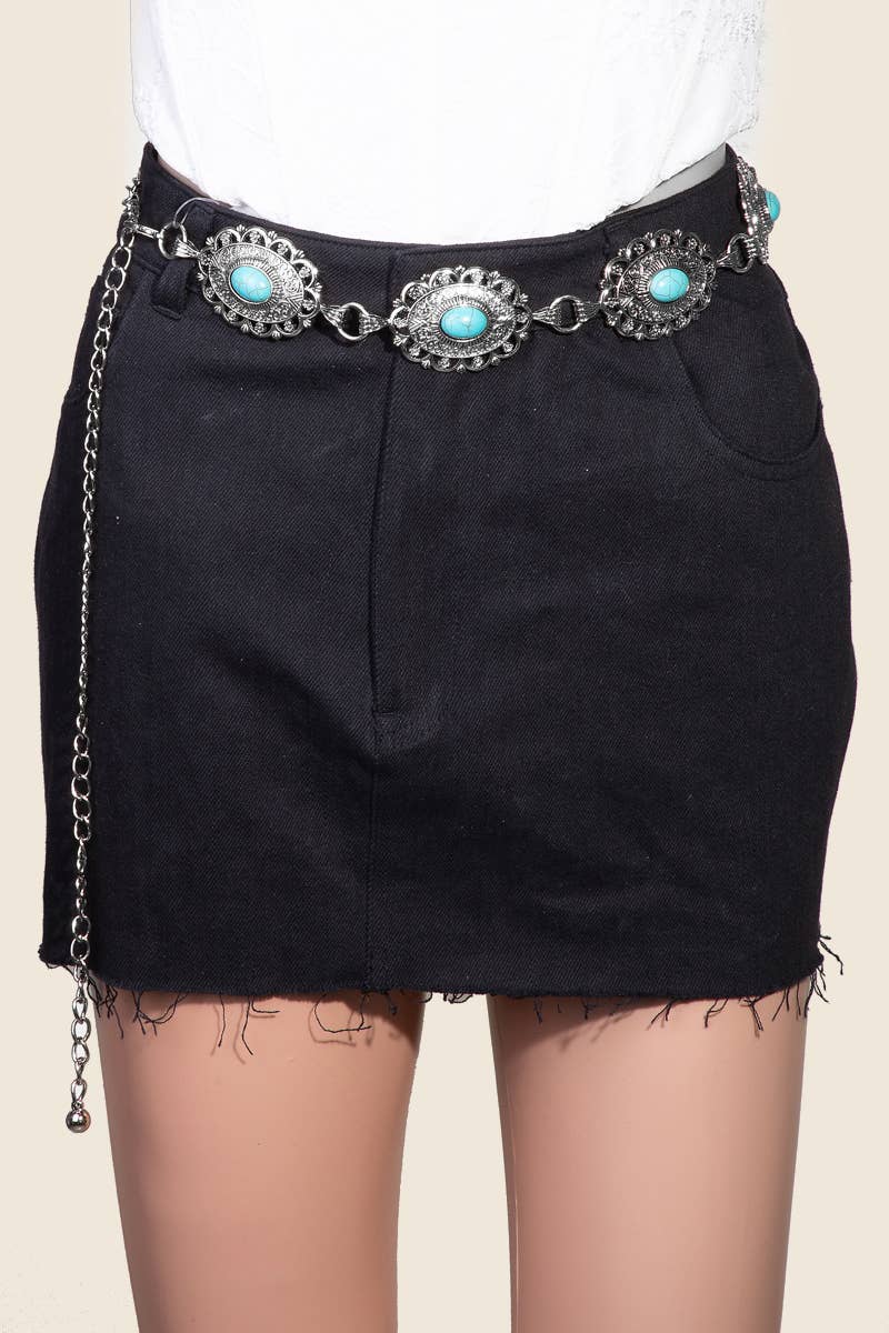 Bold, daring, and endlessly stylish, this chain belt features a refined, intricately detailed metallic oval concho design that adds a touch of edge and elegance. Whether layered over dresses or styled with denim, it’s a simple yet impactful accessory that instantly elevates your everyday look.