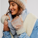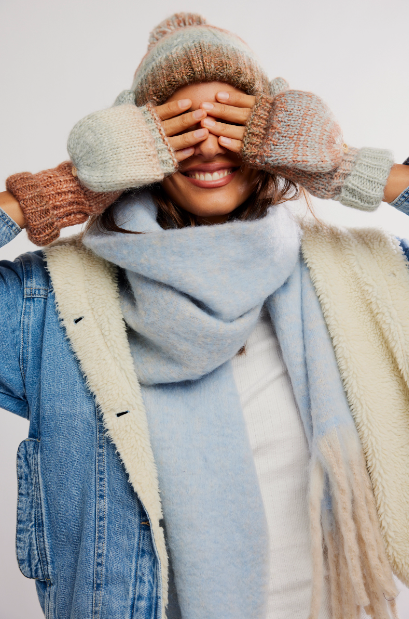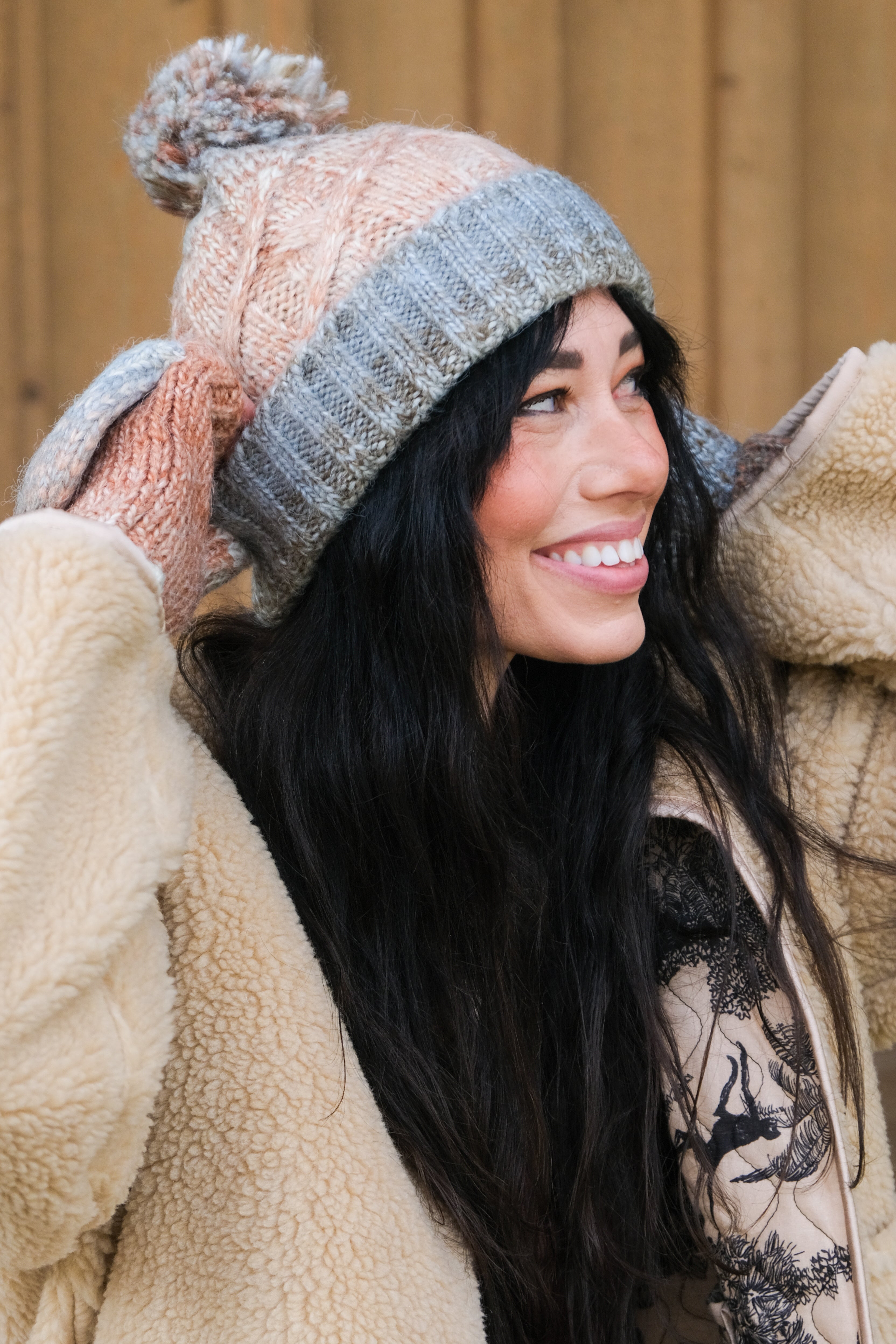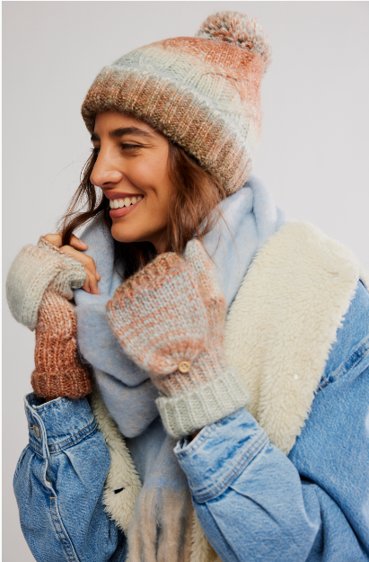 Whether you pick up this sweet set for yourself or others, its sure to be a hit with its soft knit construction and its muted pastel color palette. The beanie is a classic knit with a pom on top and the gloves feature a flip top with a button. Sold as a set, these come sweetly tied with a velvet bow ready for gifting!