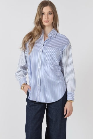 Color block Striped Long Sleeved Blouse - Blue Stripe