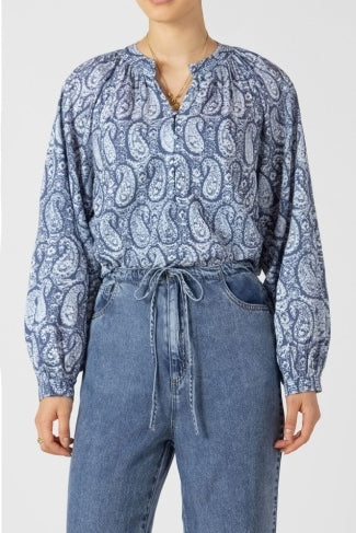 Paisley Blouse with Puff Sleeves- Blue Paisley