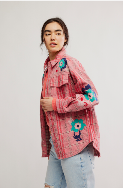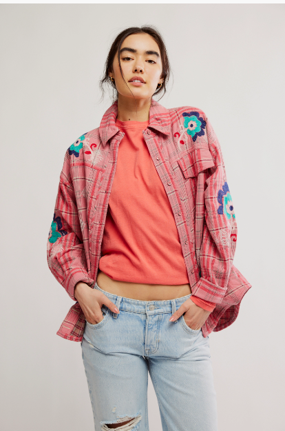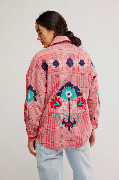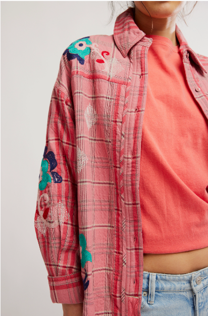 A plain flannel elevated by Japanese Shashiko embroidery, it takes this cotton plaid to new heights of style. The kind of piece that only gets better with age, the colors and details are signature playful and bright Free People.