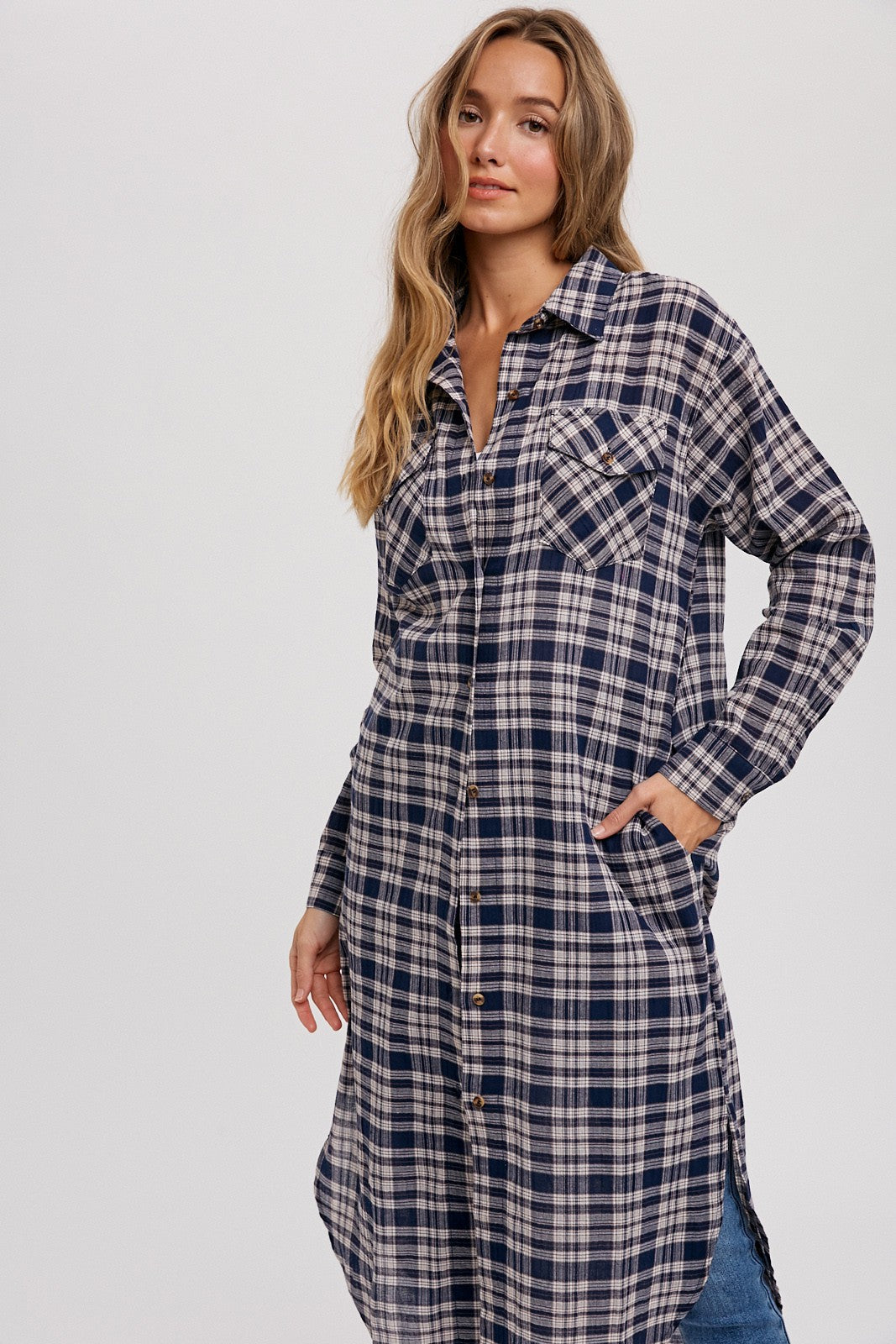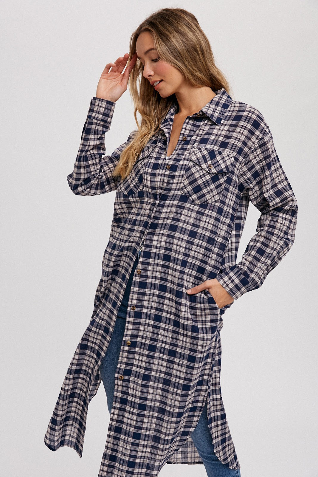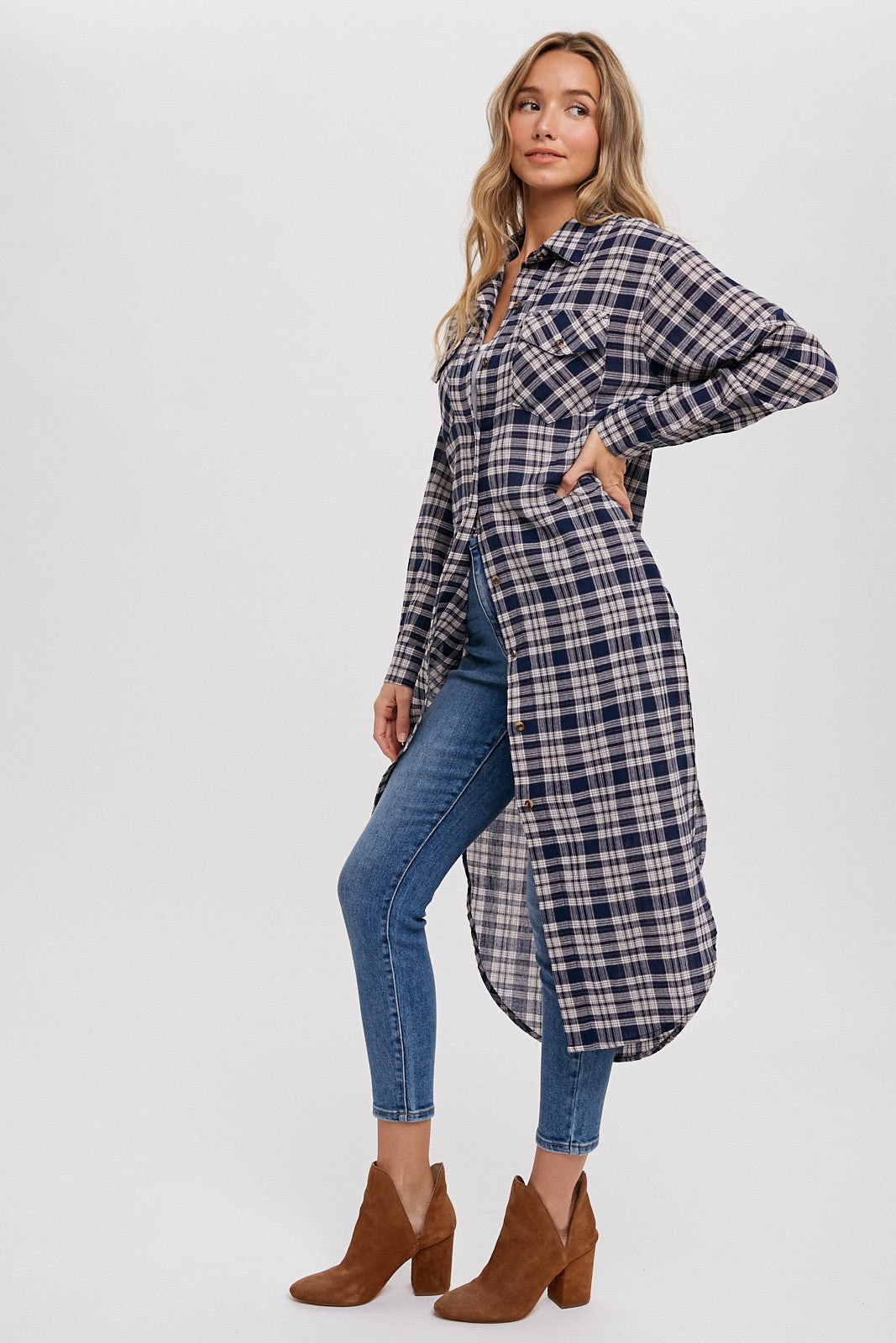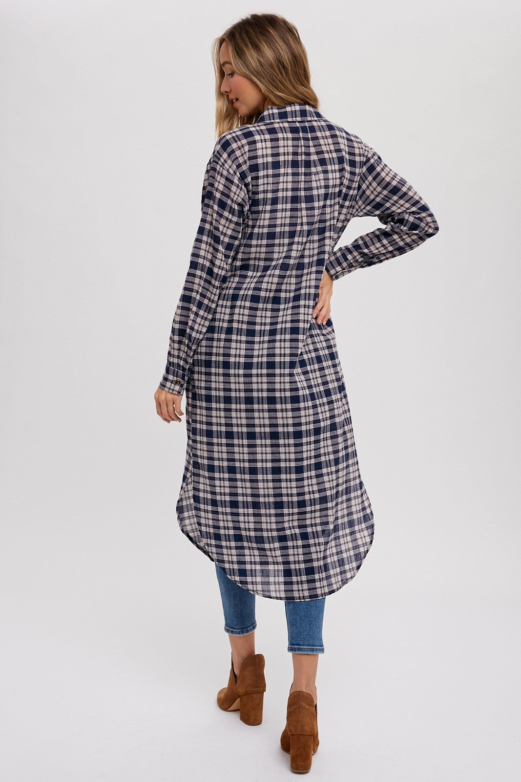 A favorite fall layer at Moka: the plaid duster! Wear it as a top or belted and layered over your favorite tee or cami, and pair with shorts, jeans or a mini and boots. There are endless ways to wear this piece. One Size