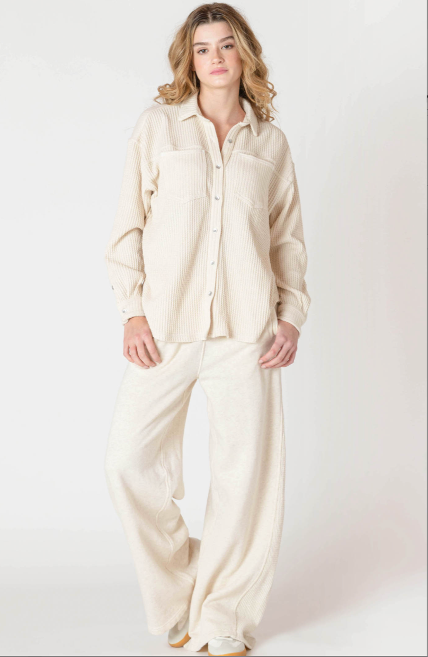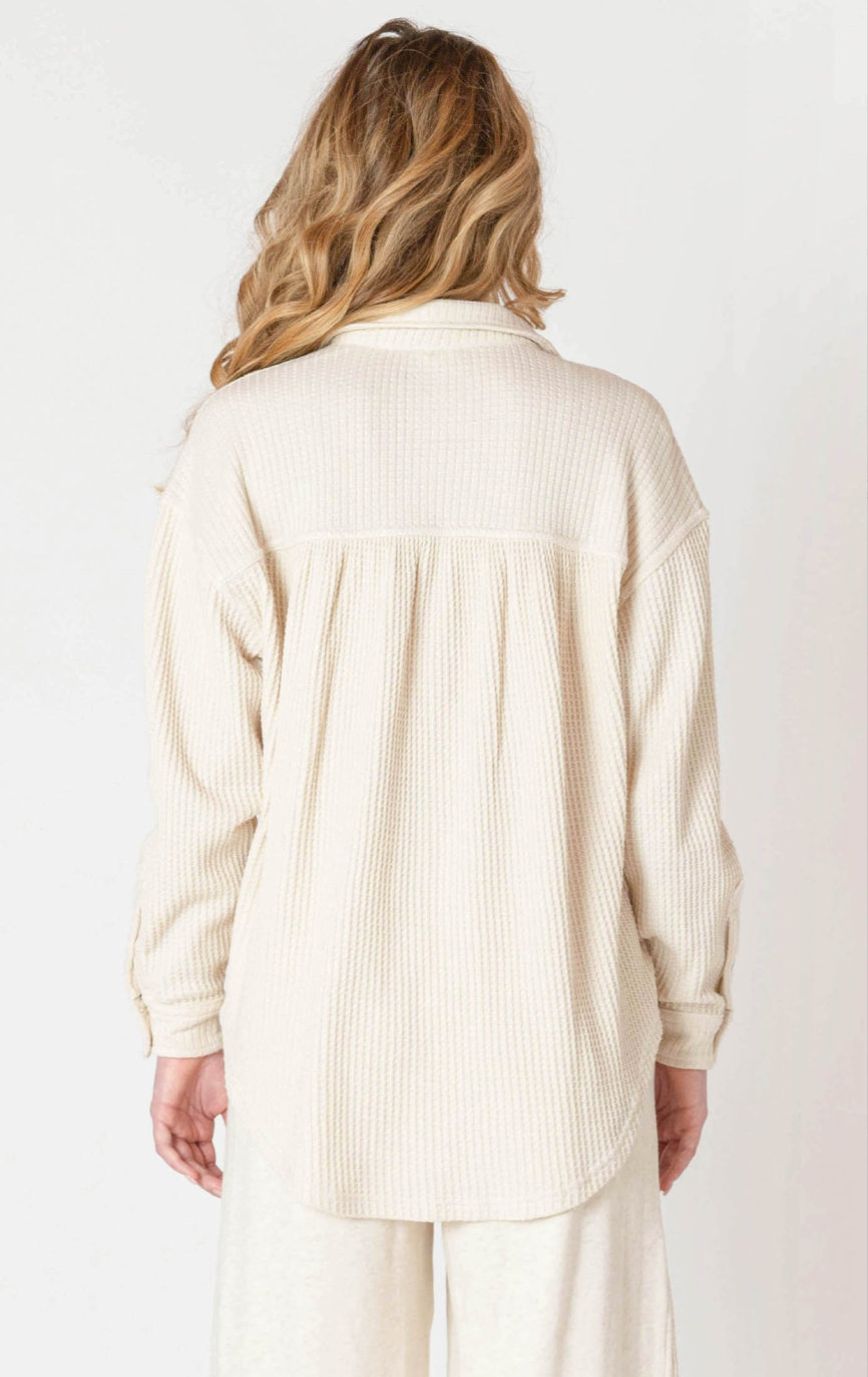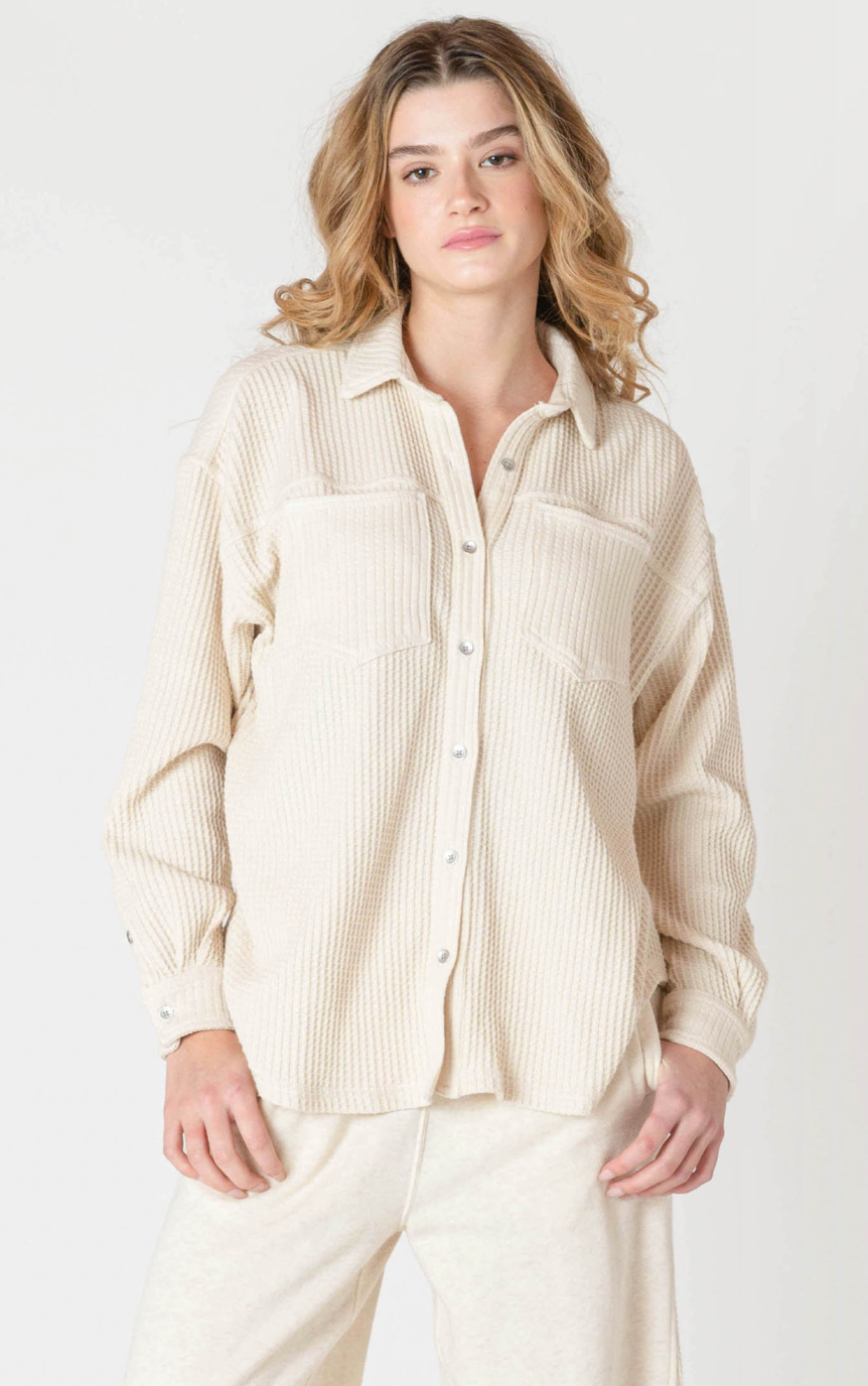 Soft and stretchy, the perfect lounging top that still has you looking crisp and ready for anything. Wear alone as a blouse or layered over tanks or tees -- you will wish you had two!