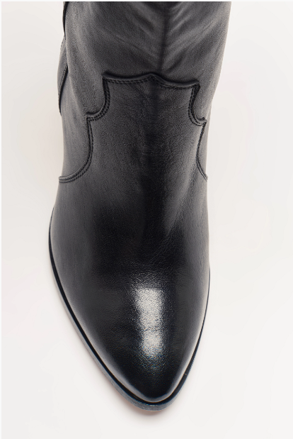 Italian suede and leather boots in timeless black! These are a Moka favorite -- supple leather, elegant heel, and styling detail make this our sexiest boot.