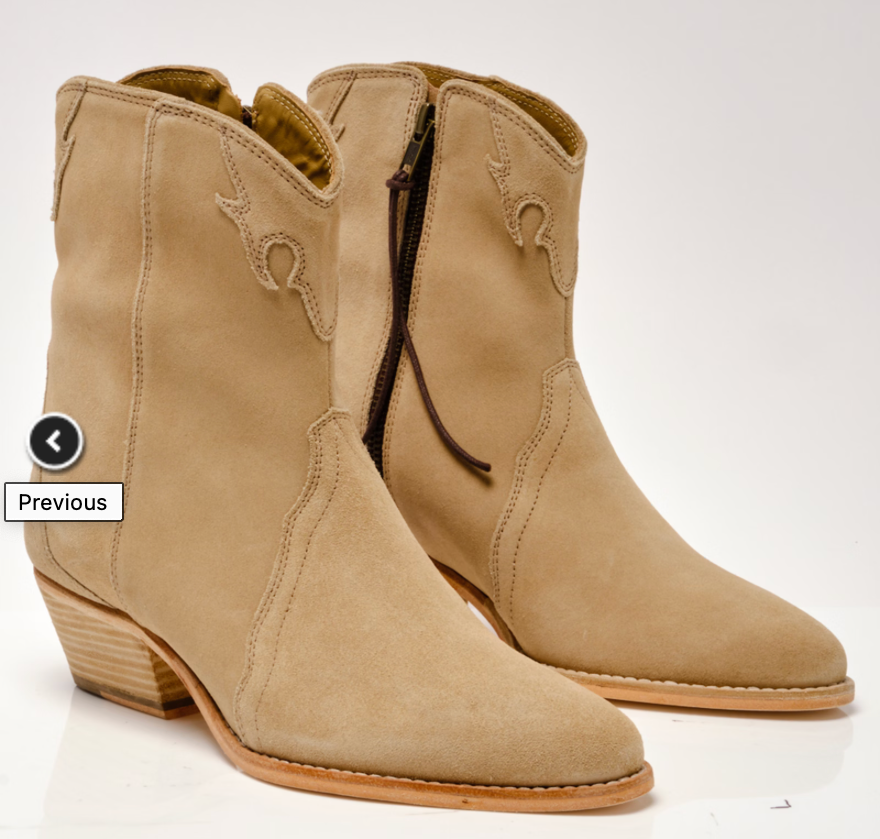 Free People's stand ankle boots in a western-inspired silhouette featuring a low stacked heel and pointed toe. In suede or patent leather.