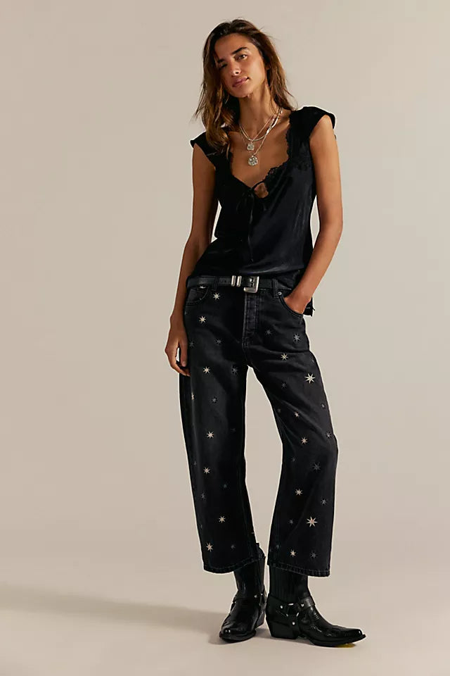We The Free Deep Trance Shine Embroidered Boyfriend Jeans