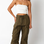 Cute, cute! And Comfy! These chute pants have a drawstring waist and cargo pockets.
