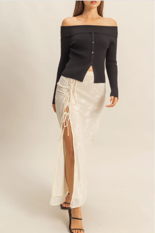 Floral Drawstring Maxi Skirt- Ivory