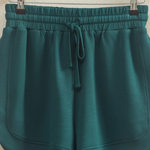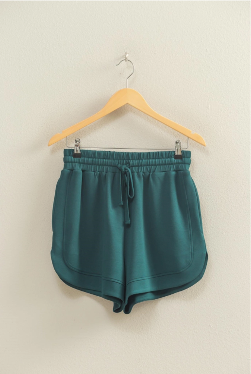 Soft and flowy, these easy-to wear shorts are the ultimate in comfy! A drawstring waist, side pockets, the coziest scuba fabric, and an easy slouchy fit make these the perfect loungewear pair.