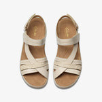 Clarks' Cecily Strap is an everyday sandal with a truly heritage feel. Crafted from supple cream leather, it boasts their Contour Cushioned footbed and suede sock lining to wrap feet in ultimate comfort, while its flexible outsole supports every move – from heading to the local farmers market to touring a new city.