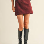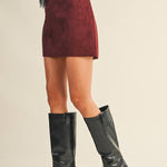 Fitted FauxSuede Mini Skirt - Cherry Liqueur