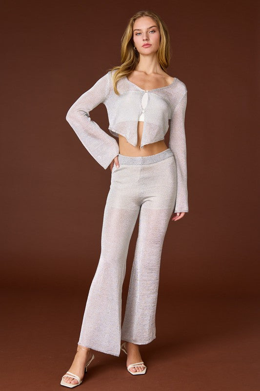 V-Neck Long Sleeve Light Weight Knit Set - Gunmetal