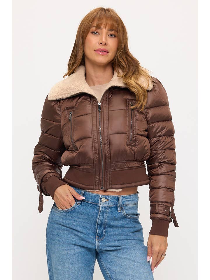 Plaid Mid-Length Button Front Jacket - Brown Combo