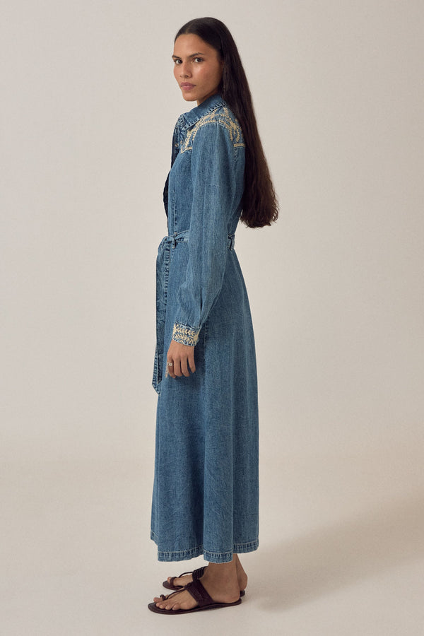Lavena Floral Balloon Sleeve Midi Dress - Blue Floral