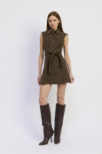 Suede year round? YES PLEASE! This faux suede mini by En Saison will have you saying "Oui" to summer suede, as it is a perfect fit for Montana, especially when paired with boots. A sweet high collared neckline and belted waist make this an easy-to-wear seasonless mini.