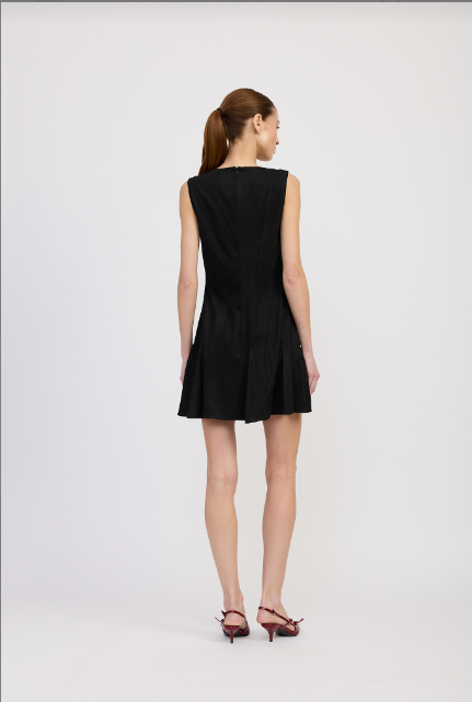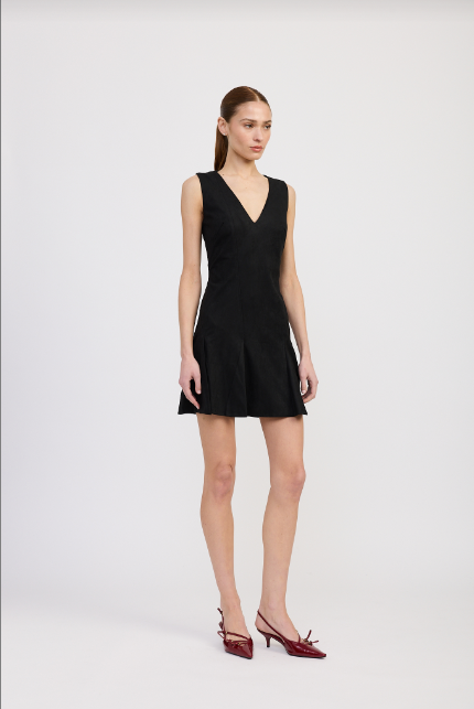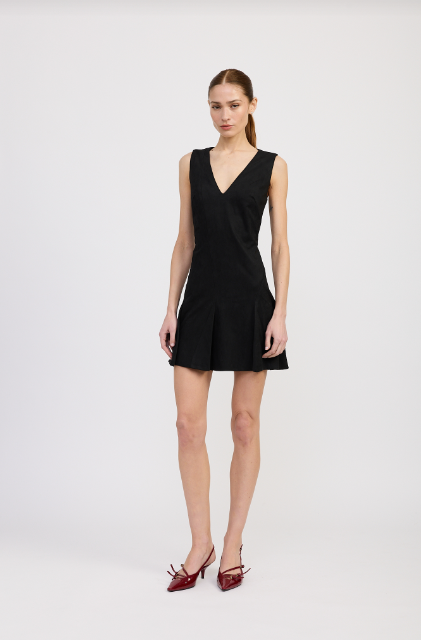 The Nelly V-neck mini is studiedly simple, with a flared mini hemline, princess seams, and a high neck V. It's sumptuous faux suede material provides texture for a bit of tone-on tone visual interest. Make getting dressed easy with this simple mini that's perfect for work and events, year round!