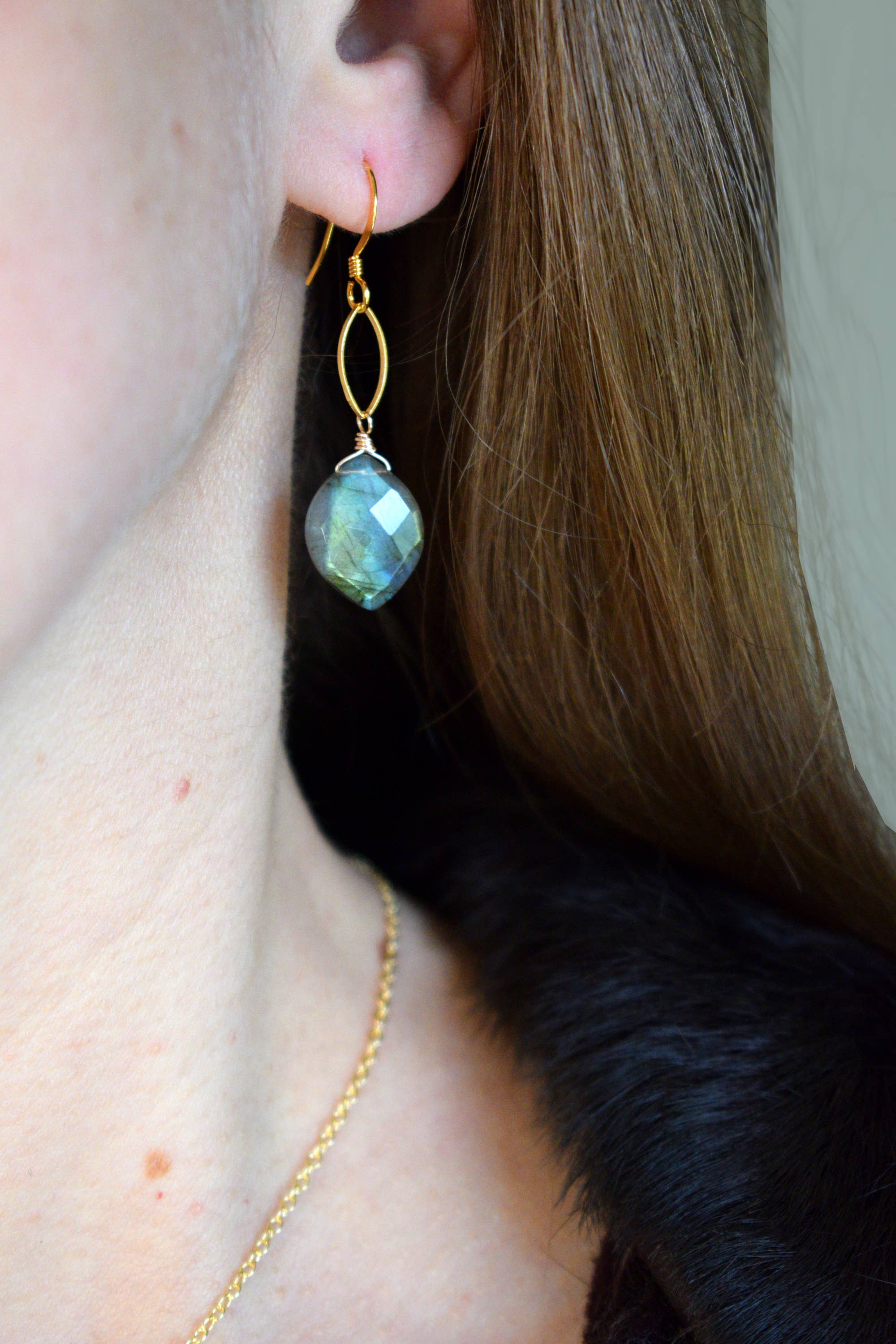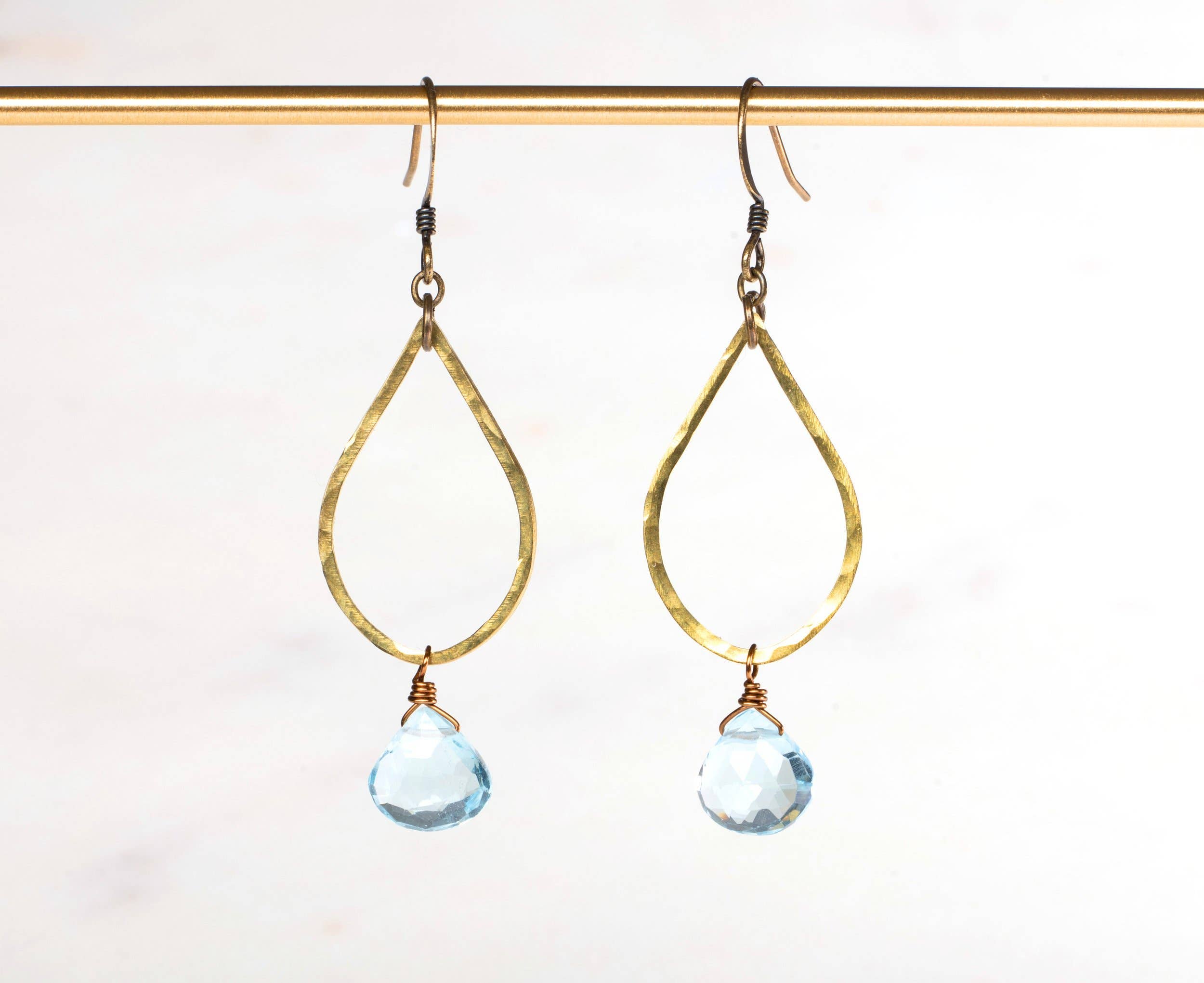 Drop Shaped Opal and Zirconia Huggie Earrings - Gold