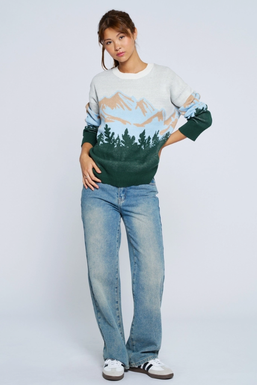 Mountain Inspired Crew Neck Sweater - Off White Combo