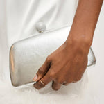 Shine bright with the Sahara Evening Bag. The unique opaque resin clasp closure adds a touch of vintage charm, while the chain strap ensures versatility—wear it crossbody or as a clutch. Shining vegan leather with a subtle textured finish, this bag will be the final detail to all your holiday looks and beyond!