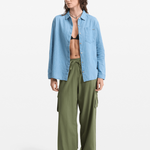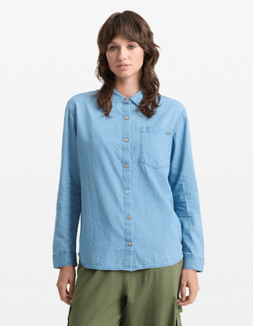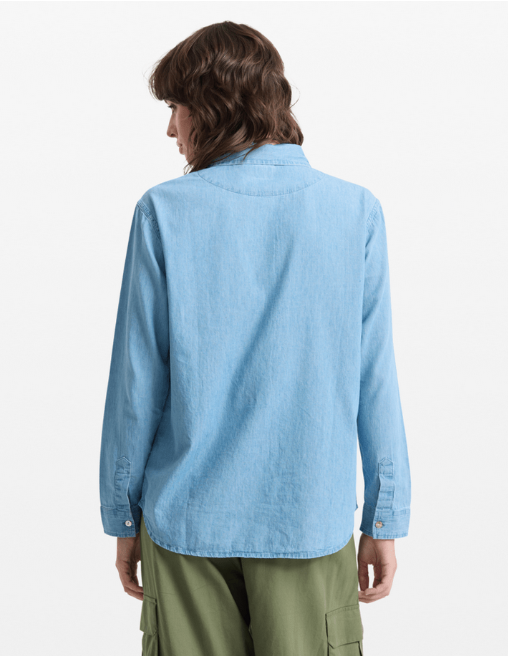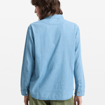 The denim shirt you've been missing, this western staple is available in a super-soft "lived in" wash that feels like you've had it for years. Light wash chambray classic button-down with a single pocket and abalone buttons will pair with and under everything, for a pop of soft sky-blue to keep your outfit just a little bit Big Sky. Go ahead, wear it denim-on-denim, with your best blues and a boot.