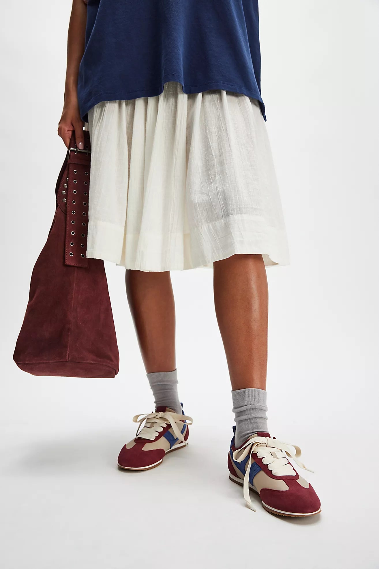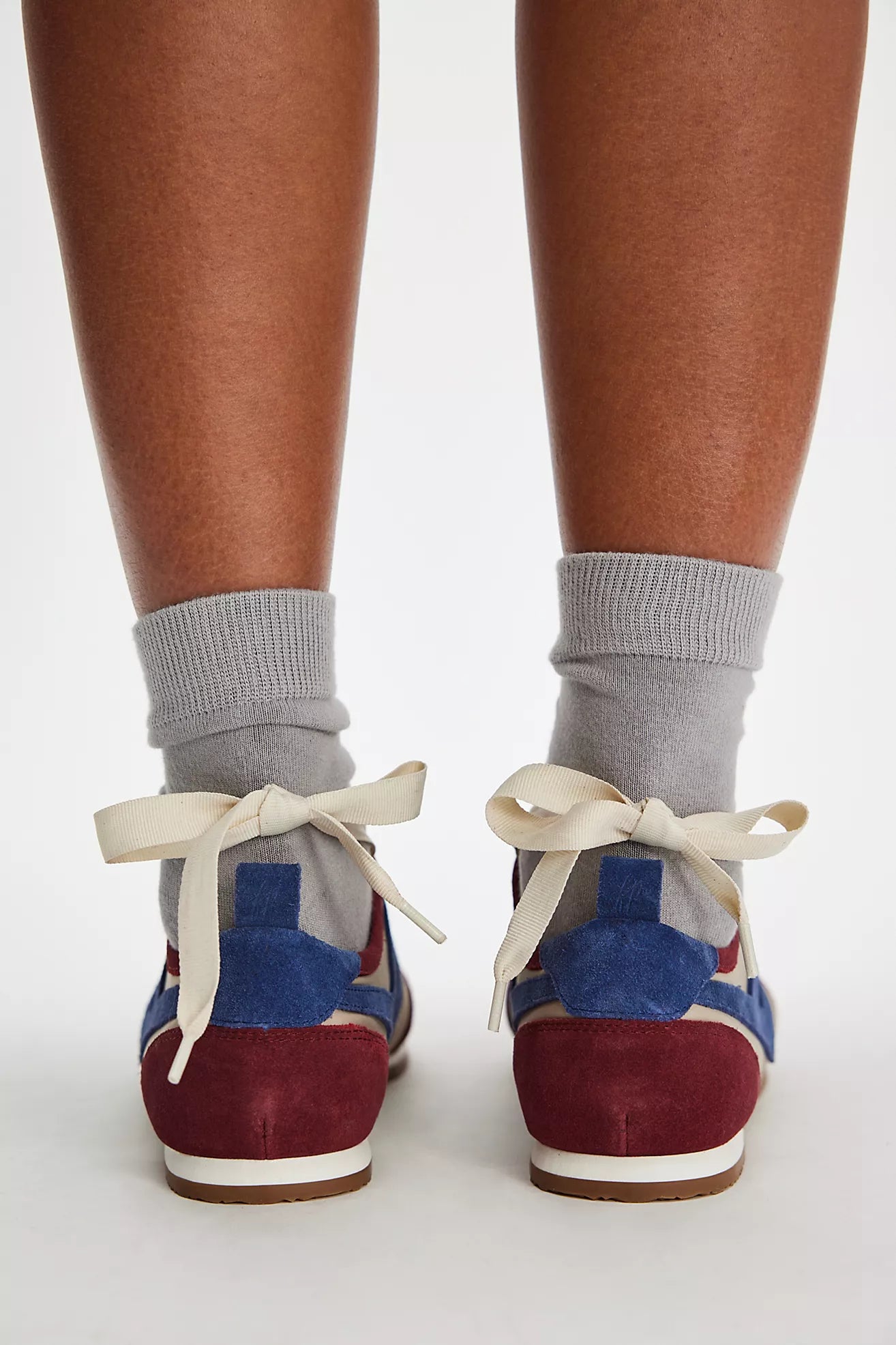 Free People has debuted their very own court style tennis shoe, featured in a slim silhouette with suede overlays and ribbon laces for the perfect mix of sporty and femme.