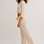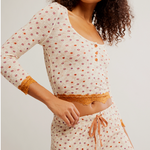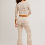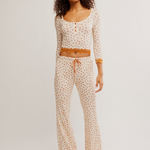 Intimately Free People cozy casual sleep set featuring an all-over floral print, drawstring waist, and henley style top, with sweet scalloped lace accents at the leg and sleeve. Snuggle up to the new season and upgrade your sleep wardrobe in this comfortable set!