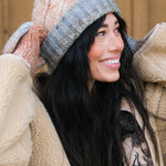 Whether you pick up this sweet set for yourself or others, its sure to be a hit with its soft knit construction and its muted pastel color palette. The beanie is a classic knit with a pom on top and the gloves feature a flip top with a button. Sold as a set, these come sweetly tied with a velvet bow ready for gifting!