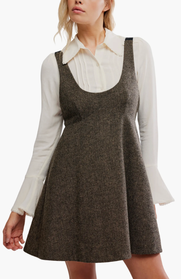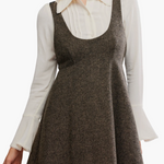 It's a mini dress with endless styling possibilities! Layer under and over, pair with tall boots or stilettos -- you can't go wrong. A lovely scoop neckline, empire waist, and ribbon tie closure with circular hardware at back.