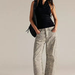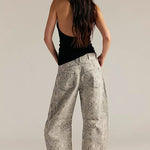 Free People Good Luck Printed Barrel Jeans - Snake Combo