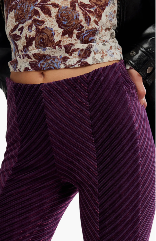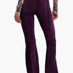 A textured iteration of Free People's iconic Penny silhouette, these pants feature an effortless pull-on design, flattering flare fit, and chevron velvet finish for added dimension. They are fun, comfortable, and work with tops both cropped and flowy.