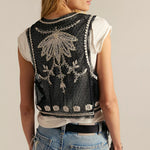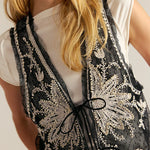 So dreamy and delicate, this vest features a semi-sheer tulle fabrication, stunning embroidered details, and a tie-front closure for the perfect elevated layering piece.
