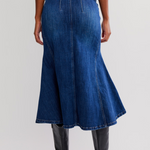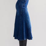 This denim fit and flare midi skirt brings a fresh twist to a timeless classic, featuring a flattering silhouette with effortless movement. A versatile piece that pairs perfectly with everything from casual tees to polished blouses.