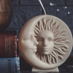 This elegant sun and moon candle is a beautiful rendition of the classic celestial duality. The perfect addition to any space or altar. 4”H, 4”L, 1" W; Net Wt. 0.169 kg Made with the perfect blend of 100% soy wax and beeswax for a more aesthetically pleasing hardened decorative candle without frosting Handcrafted in Canada. Made with sustainably sourced, 100% natural ingredients including lead-free cotton wicks for a clean burn Fragrance-free (unscented) Ritual candle. Moon candle. Sun candle. DISCLAIMER: Due to its handmade nature, slight imperfections may occur.