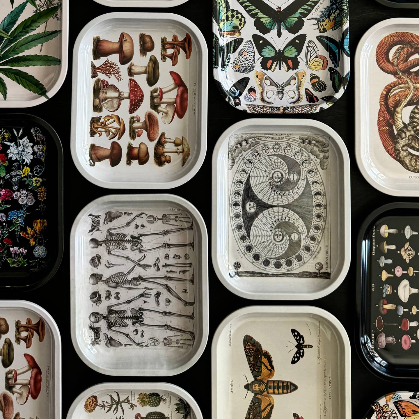 A vintage inspired tray for daily use. 5"x7" tray made of sturdy metal (will not bend). Features vintage scientific illustrations. Perfect as a catch-all tray, trinket tray, or use in your ritual space.