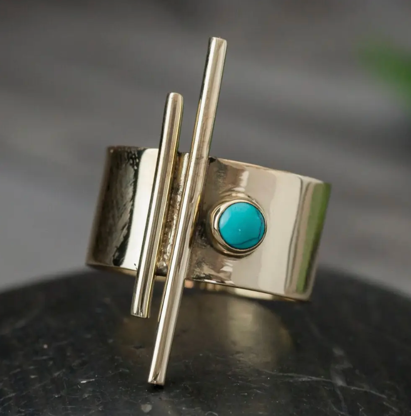 Brass Bar Ring - Turquoise