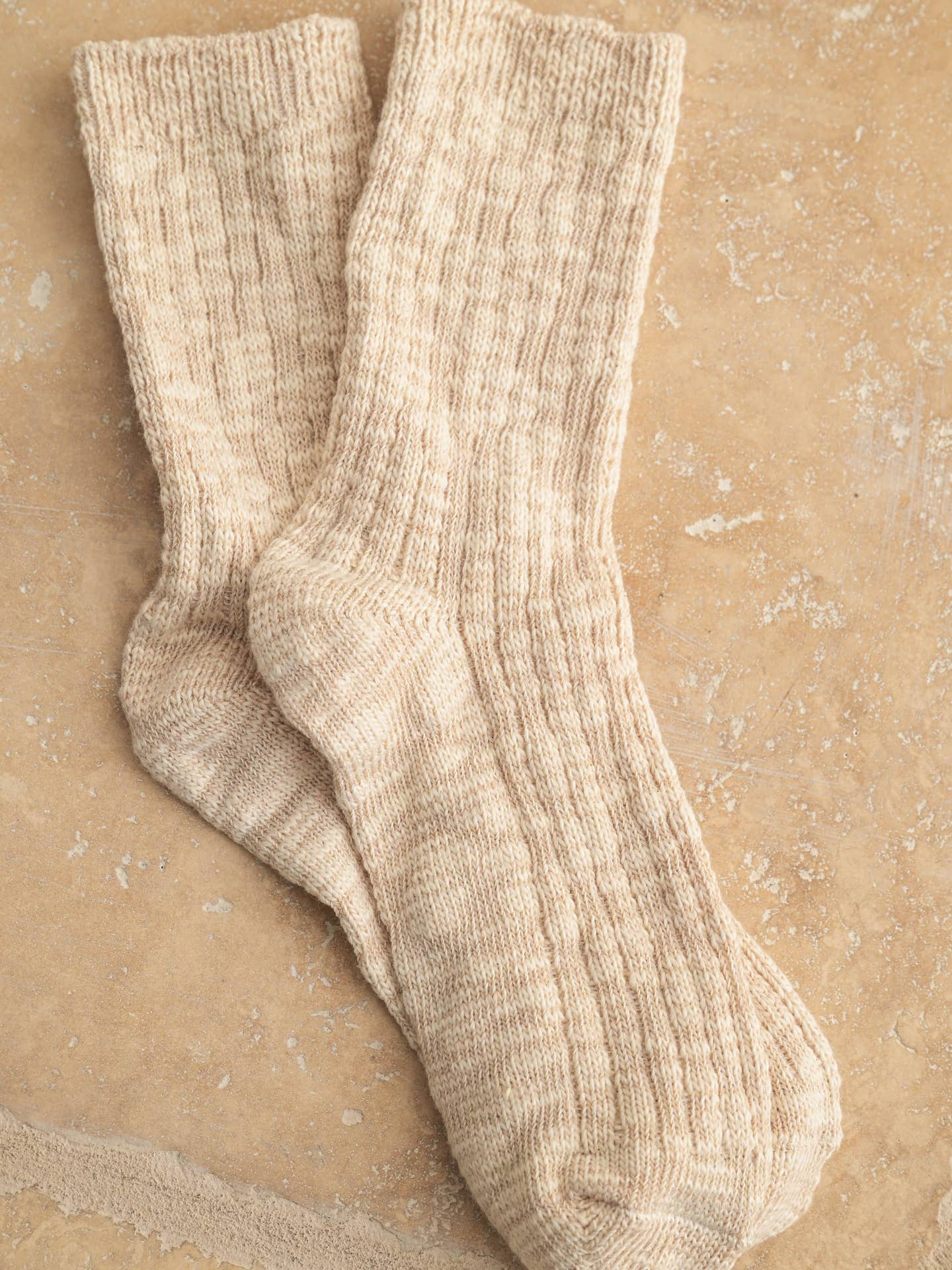 Soft with ribbed texture and heather yarn for a bit of visual interest. The perfect everyday sock.