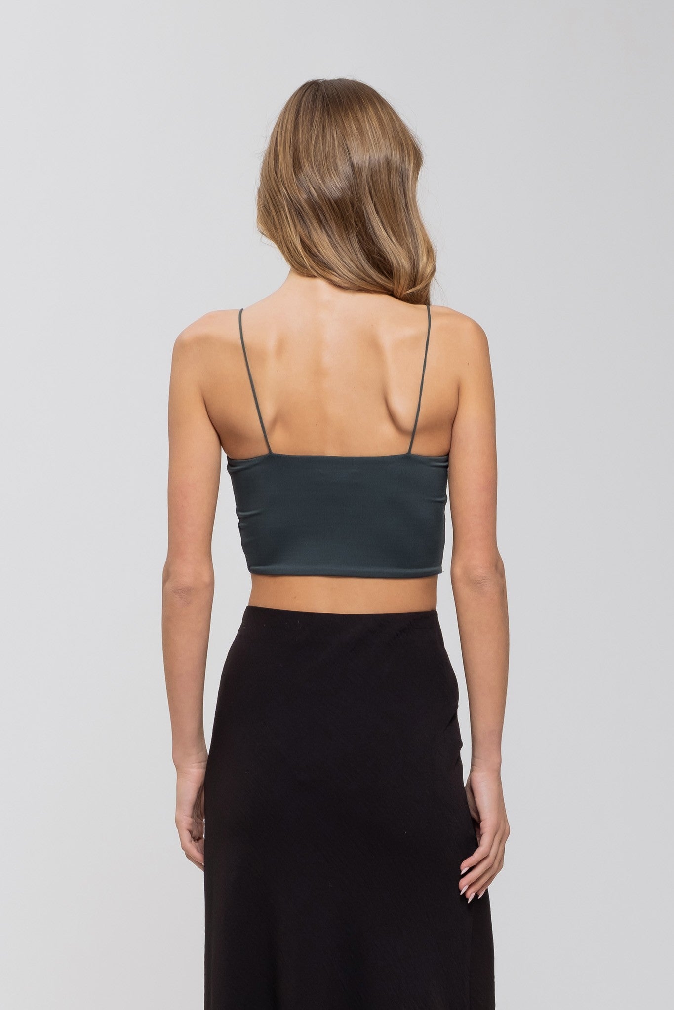 Perfect for layering or on its own! This seamless cami has a hint of sheet in the fabric and super thin cord straps for an elegant look. Cropped length and a touch of spandex for comfort.