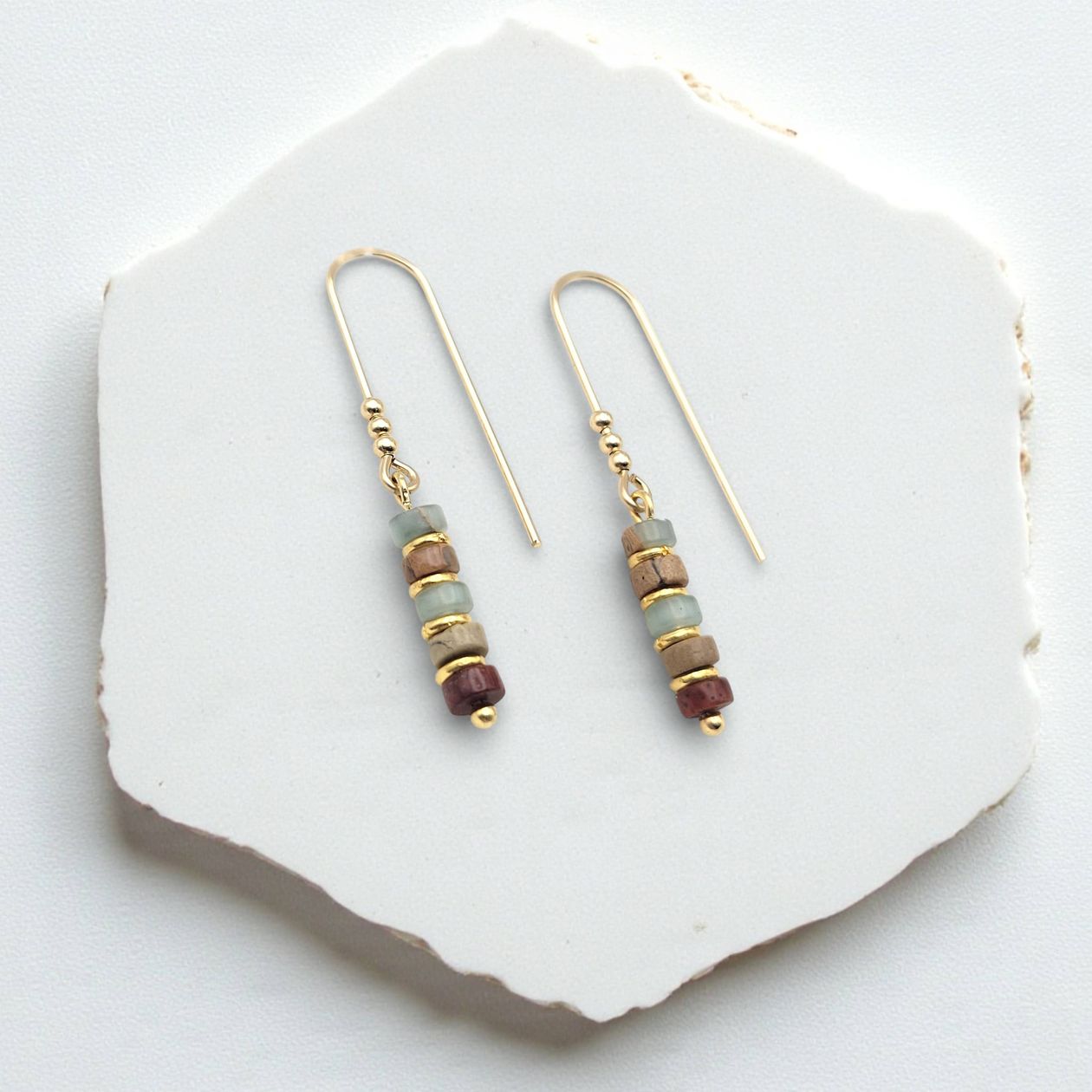 Earth Tone Bead Straight Dangle Earrings