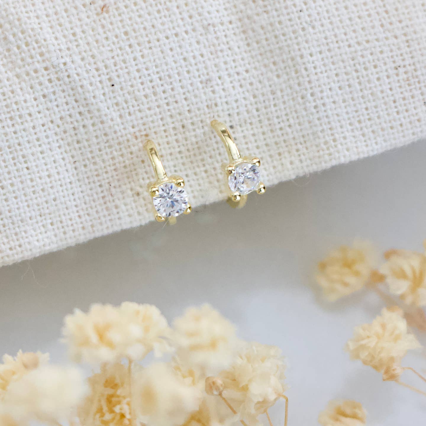 Dainty and ideal for sensitive ears -- gold plated over sterling silver huggie tiny hoops. Perfect for everyday.
