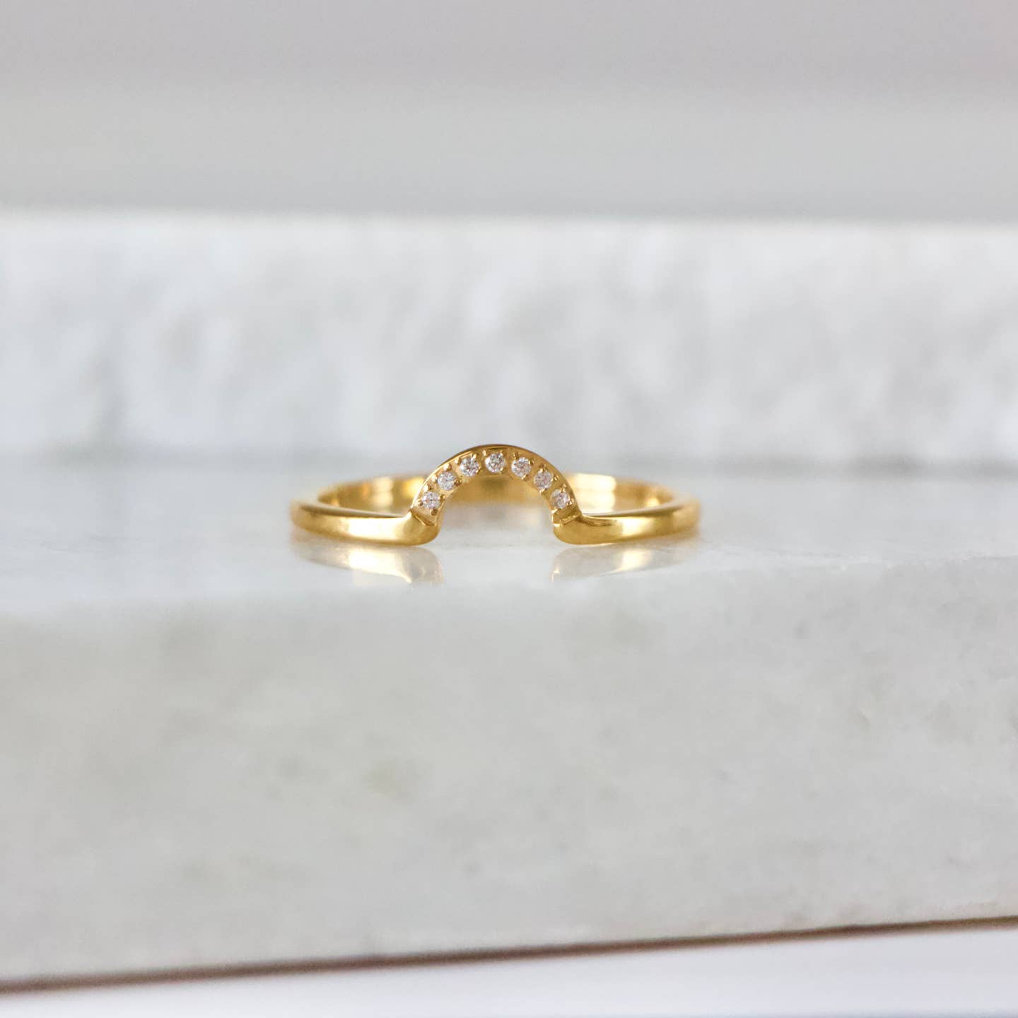 Great alone or for staying alongside a variety of rings. Seven zirconia set into 18K gold plated arc.