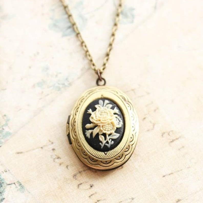 Floral Cameo Locket Necklace