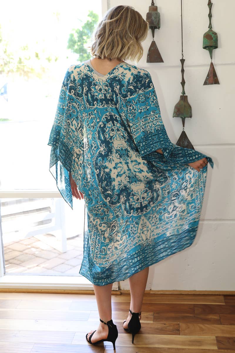 Infused with bohemian charm and western flair, this printed kimono from Angie captures the essence of a free-spirited, well-traveled lifestyle. Featuring abstract geometric patterns and an easy junior fit, it's the perfect layering piece for resort getaways or everyday wanderlust.